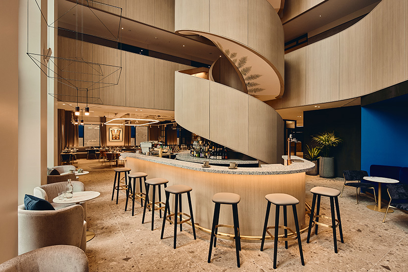 Above the retail, Hotel Indigo and Holiday Inn each offer a distinct character. Hotel Indigo celebrates Melbourne’s eccentric history through playful interiors inspired by the site’s past – from E.W. Cole’s “emporium of everything” to the former Turkish baths once located here — while the Holiday Inn embraces a natural, calming palette that evokes a home-away-from-home feel.
